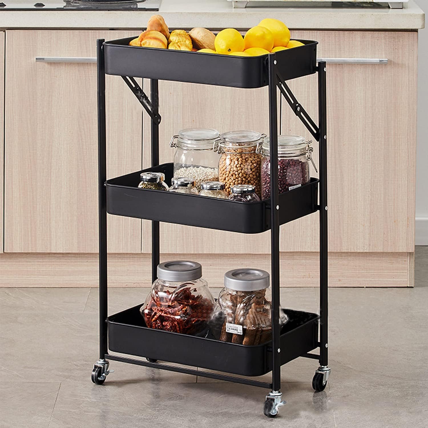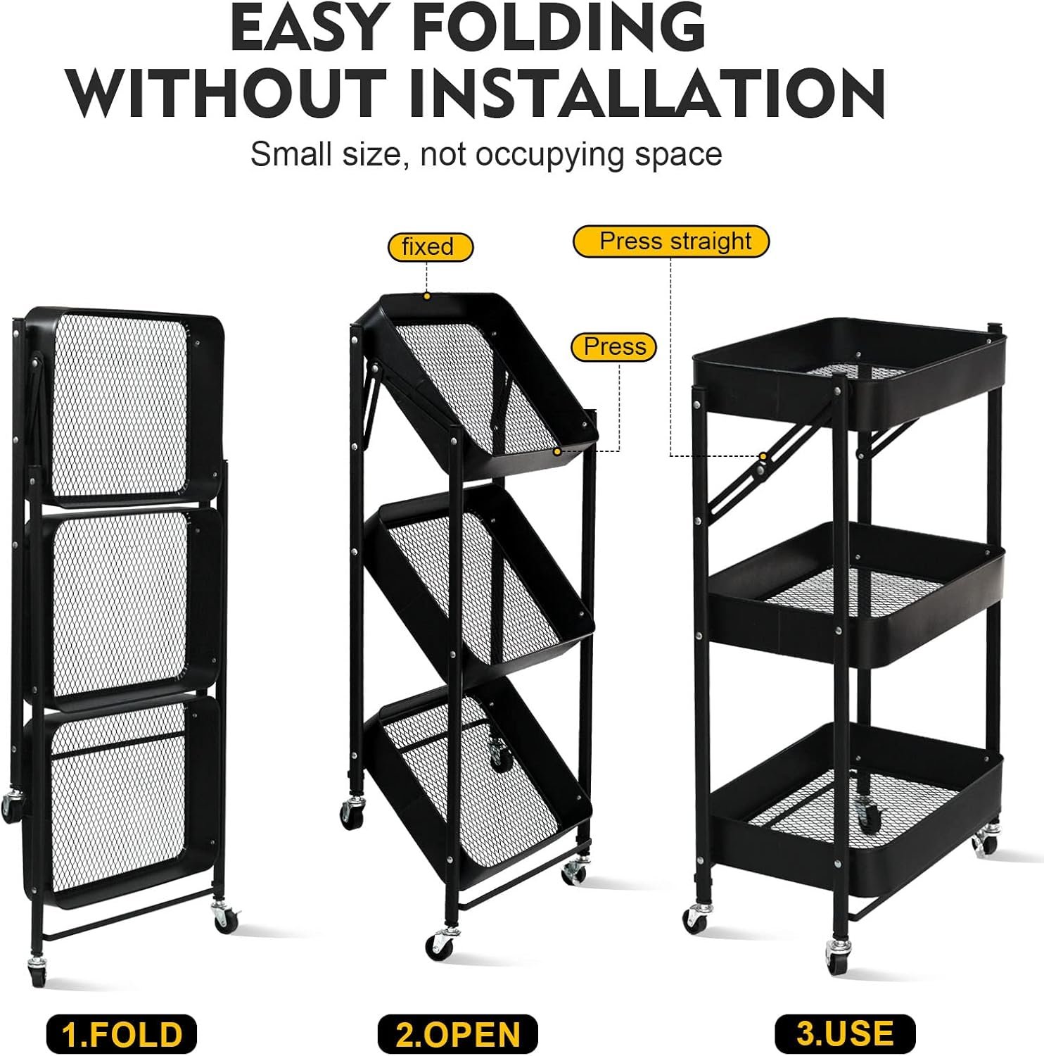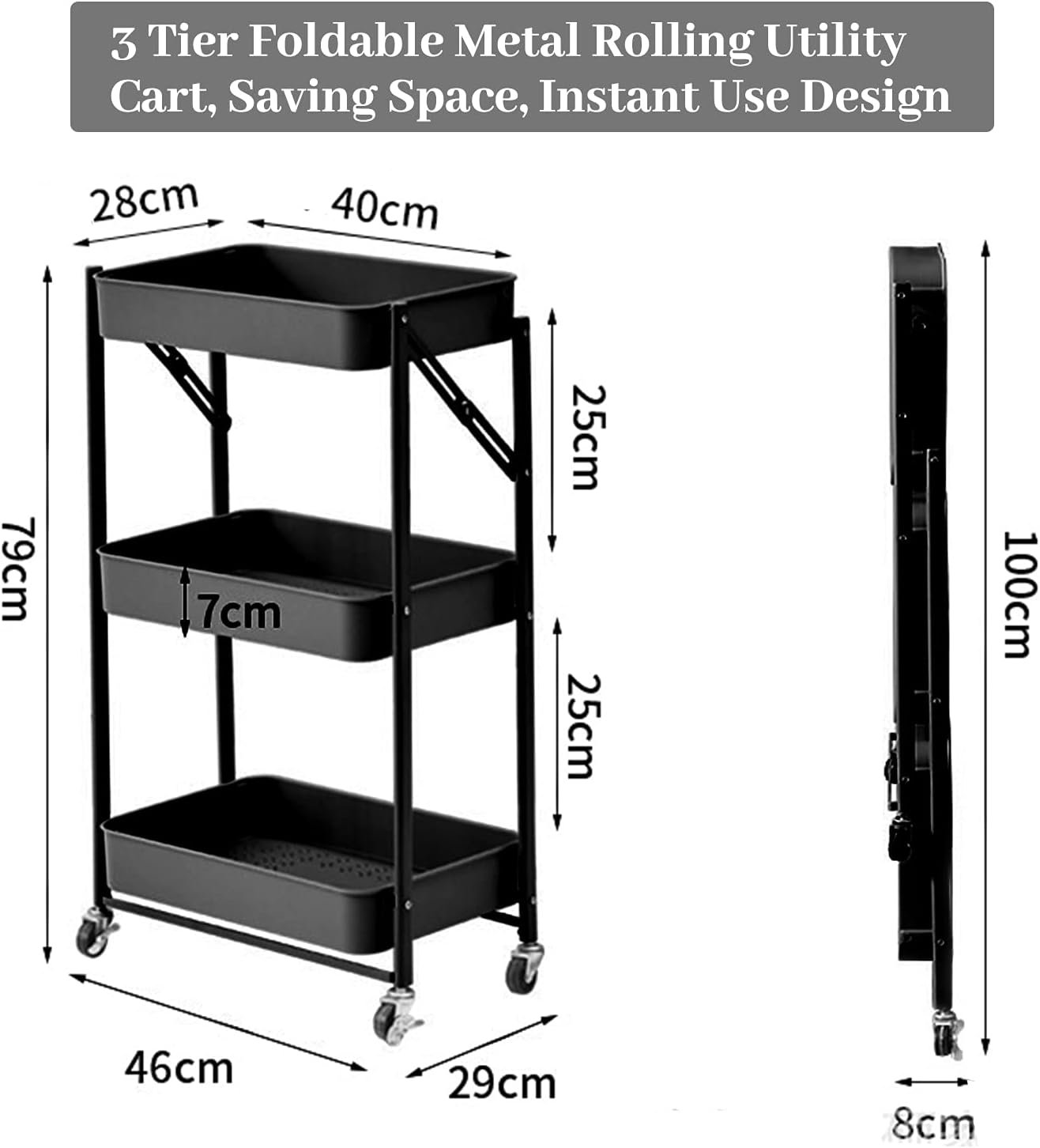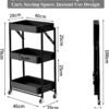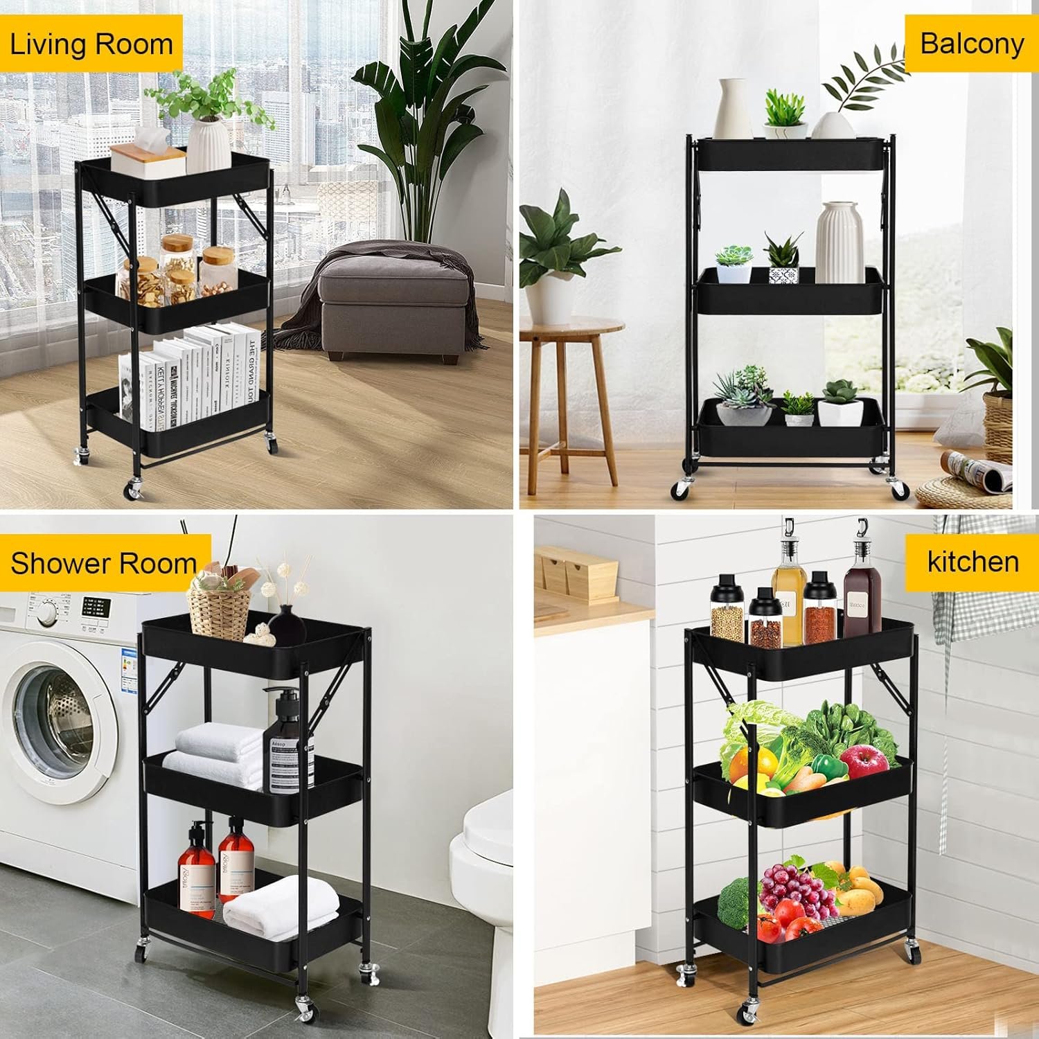 3 Tier trolley organizer,Foldable Metal Rolling Utility Cart Organizer